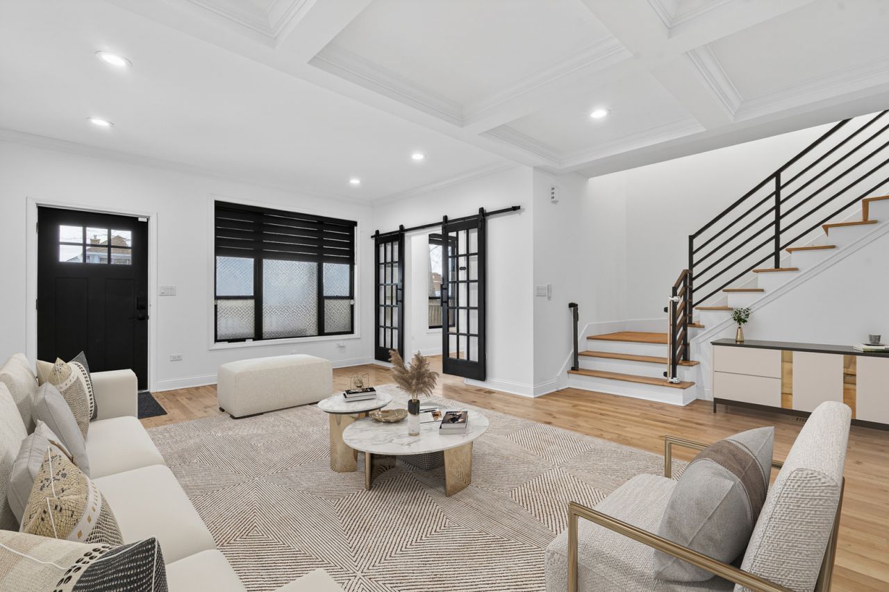 Stunning 4-bedroom, 3.5-bath modern farmhouse offering over 4,000 square feet of thoughtfully designed living space where no detail has been overlooked. Step into a sun-drenched, wide-open main level featuring a seamless flow from the inviting living area to a spacious dining room and a beautifully appointed kitchen. The kitchen is a showstopper that features an oversized island with breakfast bar, farmhouse sink, black stainless steel appliances, range with range hood and pot filler, dual built in ovens and a walk in pantry. An office with sliding French doors, a convenient half bath and mudroom with built in bench complete the first floor. Upstairs, you'll find three well-sized bedrooms, a full laundry room, and a versatile loft. The expansive primary suite features a fully outfitted walk-in closet and a luxurious en-suite bath with massive full spray shower and dual vanity. Both secondary bedrooms share the hall bath with soaking tub. The fully finished basement adds incredible living space with a family room with a full wet bar, 4th bedroom, third full bathroom, den and additional storage space. Enjoy outdoor living with a charming front porch complete with porch swing, a deck off the kitchen that leads to the spacious fully fenced backyard with a fire pit plus a covered patio area beneath the deck. Additional highlights include solar panels and an upgraded electrical panel ready for a future EV charger in the 2 car garage. Conveniently located near shopping, dining, and everything Berwyn has to offer, this exceptional home blends modern amenities with timeless style.